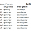 The nouns are arranged by their grammatical gender in declension classes. The endings of the nominative and genitive singular as well the nominative plural were the decisive factors in choosing this arrangement. Nouns with the same or a very similar paradigm/pattern are grouped into one class. They are not arranged according to the frequency of their occurrence in everyday language usage but in alphabetical order. Nouns with different meanings are generally only listed with their most common meaning.